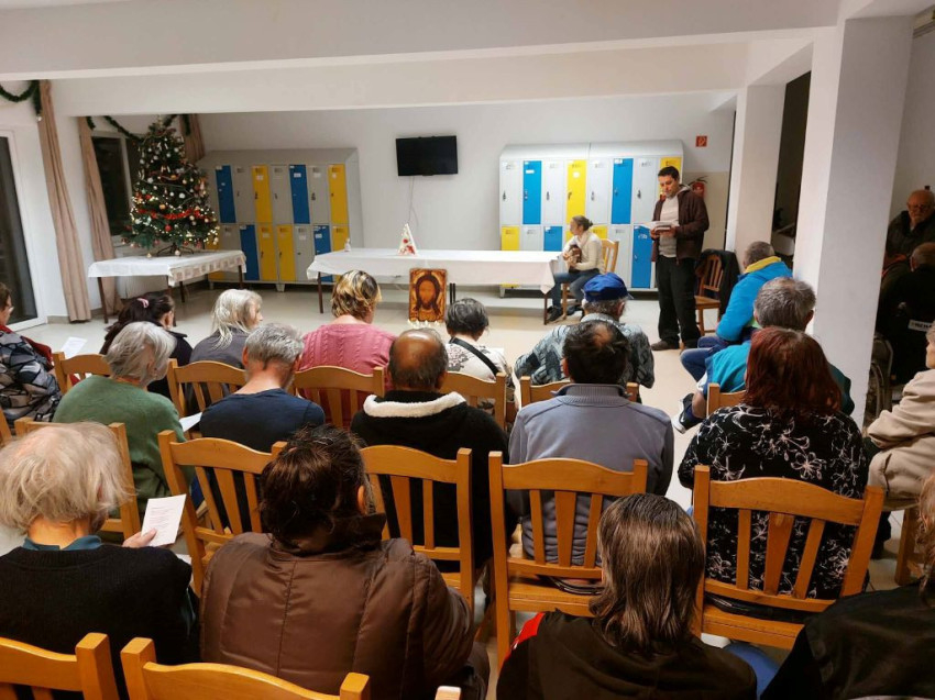 Advent második hetében a győri Hajléktalanokat Segítő Szolgálathoz látogattunk el az Avar utcába. A hajléktalanszállón már ismerős arcok köszöntöttek minket, többen lelkesen idézték fel, hogy tavaly is részt vettek az imádságunkon. Velük a közösségünk szegényekért végzett imádságát mondtuk el. Idén két dologban is változott az itteni forgatókönyvünk: az imádság után egy kis agapéra invitáltuk a résztvevőket, mi is együtt ettünk velük. Majd miután nekik is átadtuk a gyermekrajzokat, a betegszobákba is ellátogattunk, így azokat is meg tudtuk ajándékozni, illetve azokkal is tudtunk beszélgetni, találkozni, akik a betegségük miatt nem tudtak részt venni az imádságon.
