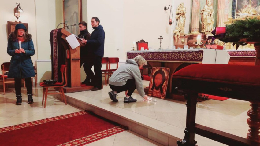 Advent első hétfőjén (december elsején) egy idősek otthonában imádkoztak a betegekért, a második hétfőn (december 8-án) a szegényekért egy hajléktalanszállón, majd a harmadik hétfőn (december 15-én) angol-magyar kétnyelvű imádságot tartottak a révfalui Szentháromság-templomban. Mindhárom alkalomra gyerekek által készített rajzokat vittek ajándékba. Kissné Hervai Sára írását tesszük közzé.