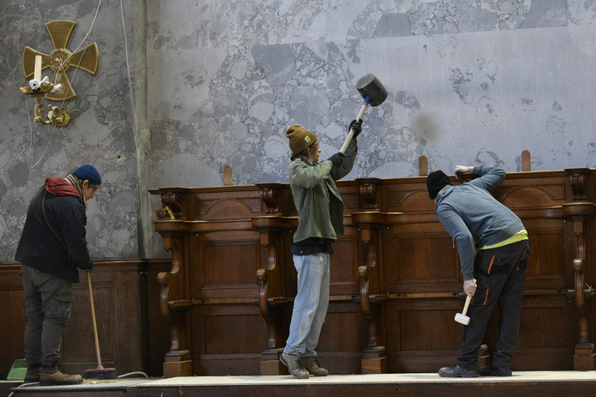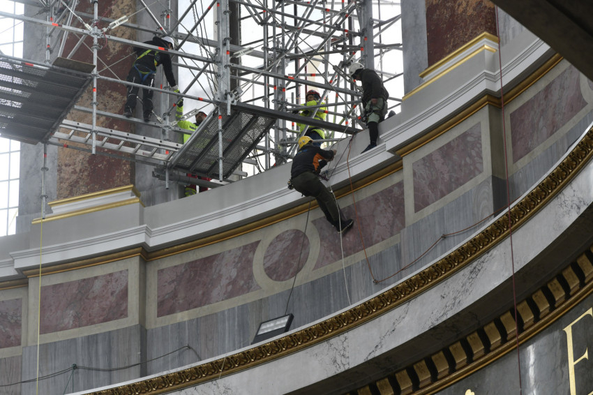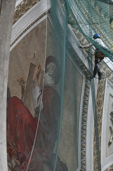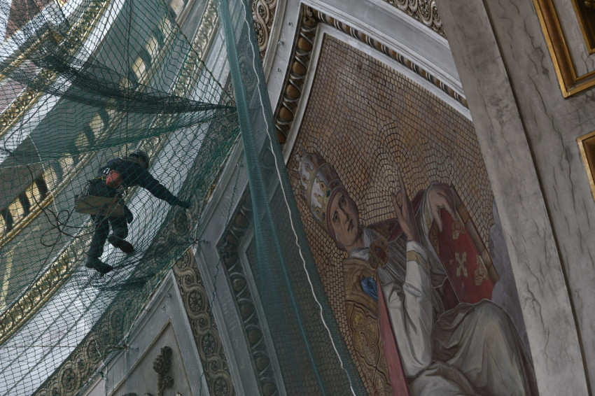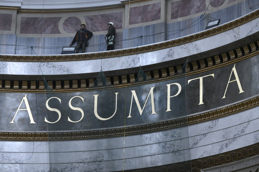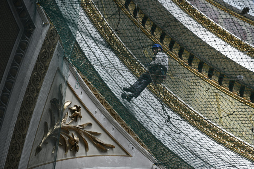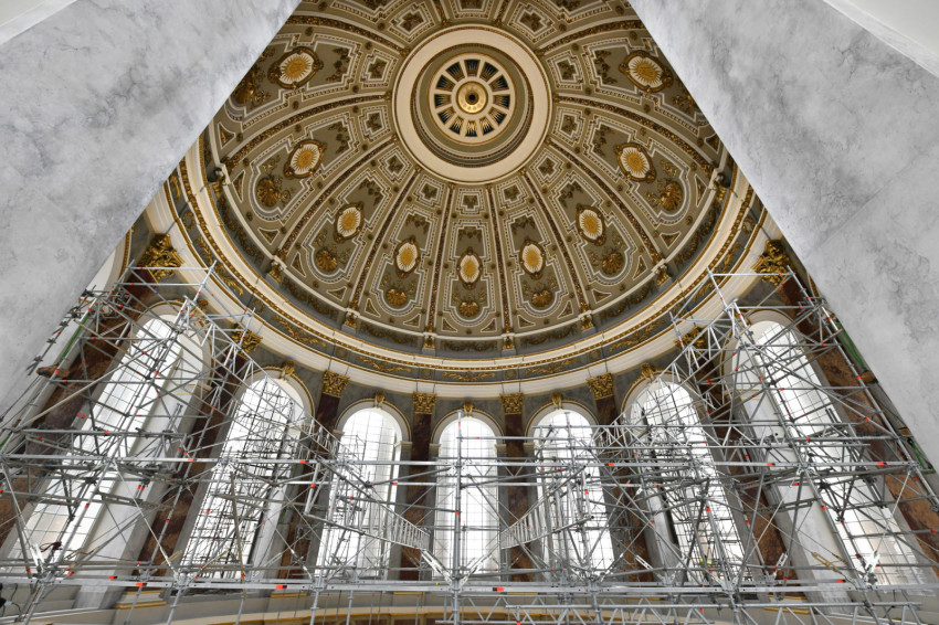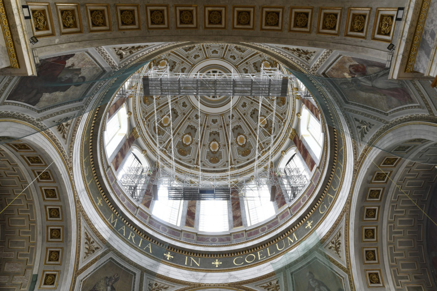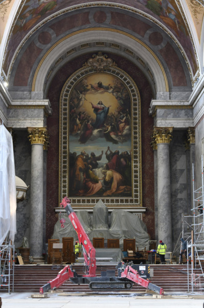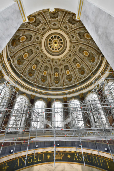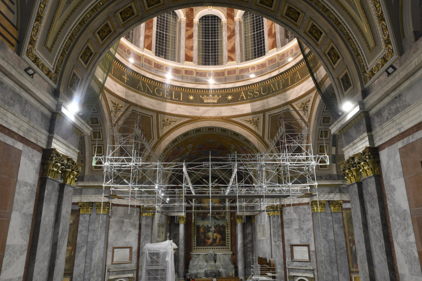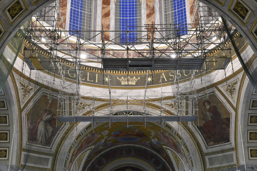 A restaurátori munkák 2021 júniusában kezdődhettek meg,és a felújítás egy esztendeje alatt tucatnyiszor átépítették az állványrendszert, hogy minden felület sorra kerülhessen. A félgömb kupolabelsőből három hónap átszerelés után készítették elő a szerkezetet a következő feladatára.