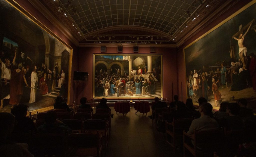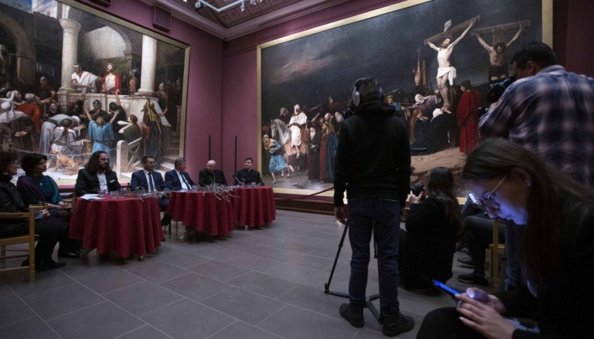 Fekete Károly református püspök megdöbbentő helyszínnek nevezte a sajtótájékoztatónak helyet adó Munkácsy-termet, amely három stációt is bemutat.