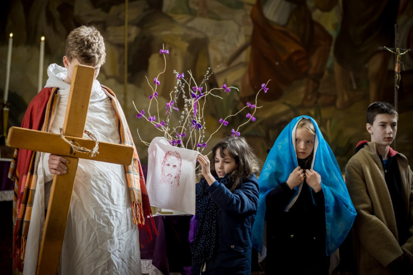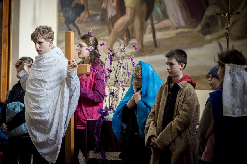 A keresztút utolsó állomásainál újra besütött a nap a templom ablakain. Ezt vitték el magukkal a családok, hogy a nagypéntek után a húsvétvasárnapot majd ilyen fényben láthatják.
