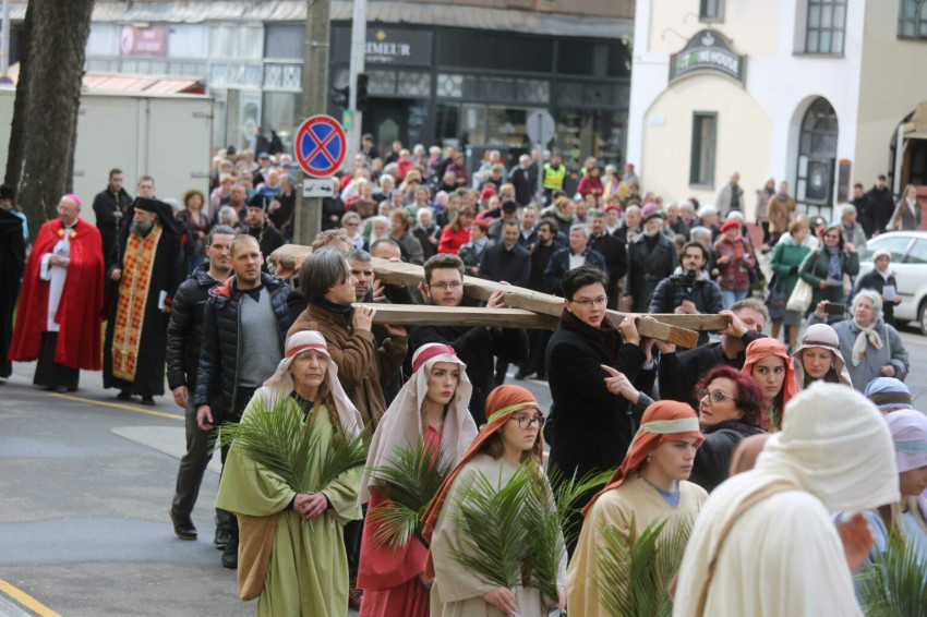 Az ünneplő gyülekezet a megszentelt ágakkal a kézben járta végig a debreceni keresztút hat állomását.