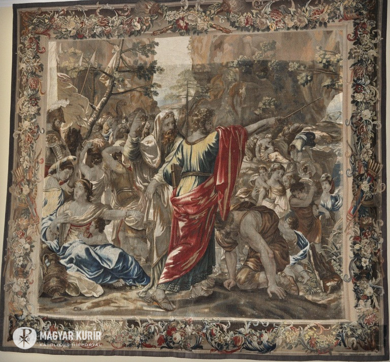 A pécsi püspöki palota falikárpitjai Brüsszelben készültek a 17. század végén, erre a városjegy utal a műtárgyak sarkában – a vizsgálatok azt is igazolták, hogy a városjegy nem utólagos kiegészítés. A próféta életét feldolgozó sorozat darabjai a következők: Mózes a fáraó előtt, Mózes átvezeti népét a Vörös-tengeren, Mózes harca az amalekitákkal, Mózes vizet fakaszt a sziklából, Mózes az égő csipkebokor előtt, Mózes vizet merít, és megitatja Jetro főpap juhait. A barokk korszakban különösen kedvelték a Mózes életéből összeállított sorozatokat; a legismertebbet ezek közül Nicolas Poussin készítette. Ritka azonban, hogy egy falikárpit-sorozat teljes egészében fennmaradjon: a pécsi Mózes-ciklus kiemelkedő jelentőségű, mert Magyarországon az egyetlen hat darabból álló, ép kárpitsorozat.