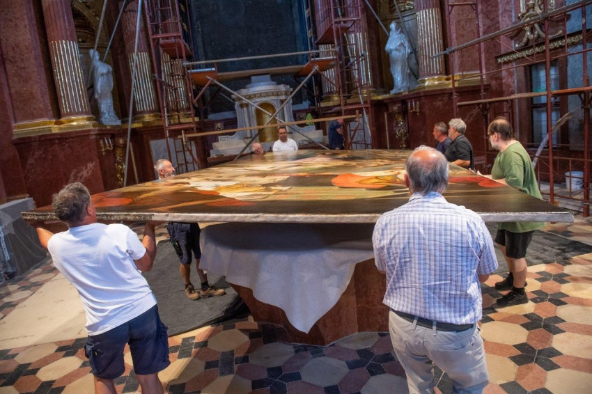 Több mint három évig tartó restaurálás után visszahelyezték a Szent István király koronafelajánlását ábrázoló főoltárképet eredeti helyére a Székesfehérvári Egyházmegye főtemplomának szentélyében. A teljeskörű restaurátori kutatásokkal 2016-ban megkezdett nagyszabású projekt befejező szakaszához érkezett.