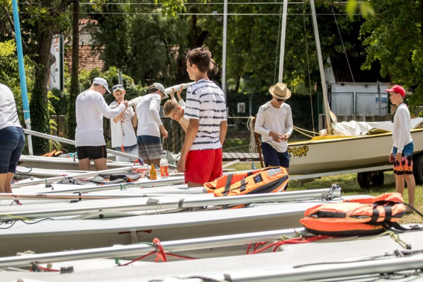 A táborozókat az előző napi nagy szél, a reggeli eső és az ünnepség utáni szélcsend sem térítette el attól, hogy nekilássanak a vitorlások felszereléséhez és a vízre szállás előkészítésének.