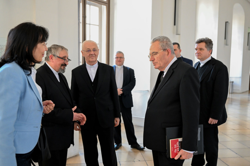 Pápai Lajos püspök életútjának ismertetésében elmondta: teológiai tanári, lelkipásztori tevékenysége mellett 1991-től 25 éven keresztül állt a Győri Egyházmegye élén. Számos tudományos munkája jelent meg, kutatási témái között szerepel – miként az előadás címe is mutatja – a katolikusság és a zsidóság kapcsolata.