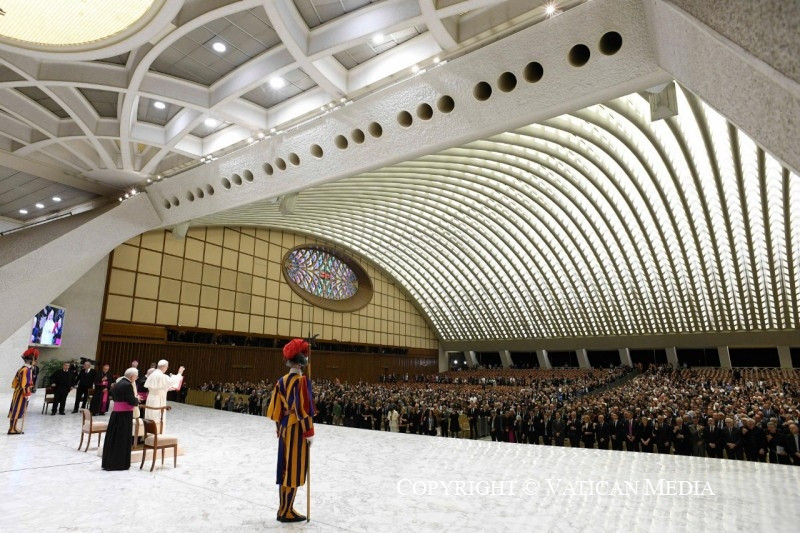 [Olaszul] Fivéreim, nővéreim! Üdvözöllek benneteket, a sajtó képviselőit a világ minden tájáról. Köszönöm a munkátokat, amelyet végeztetek és végeztek ebben az időszakban, mely az Egyház számára alapvetően kegyelmi idő.