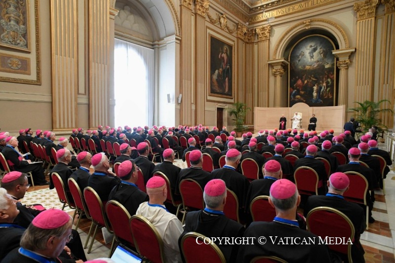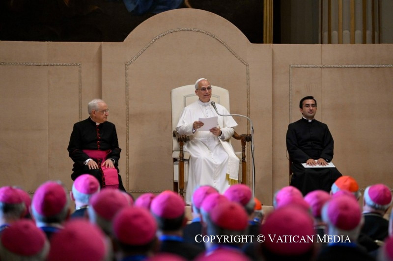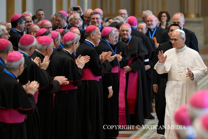 Amikor veletek együtt gyakorlom szolgálatomat, kedves testvérek, szeretnék a kollegialitás elveiből ihletet meríteni, melyeket a II. Vatikáni Zsinat dolgozott ki. Konkrétan, a Lumen gentium konstitúció azt hangsúlyozza, hogy az Úr Jézus az apostolokat „kollégiumként, azaz állandó testületként alkotta meg, s e kollégium élére a közülük kiválasztott Pétert állította” (19). Ilyen módon kell tehát szolgálatotokat megélnetek: kollegiálisan egymás között és kollegiálisan Péter utódjával.