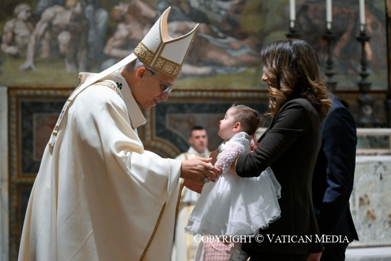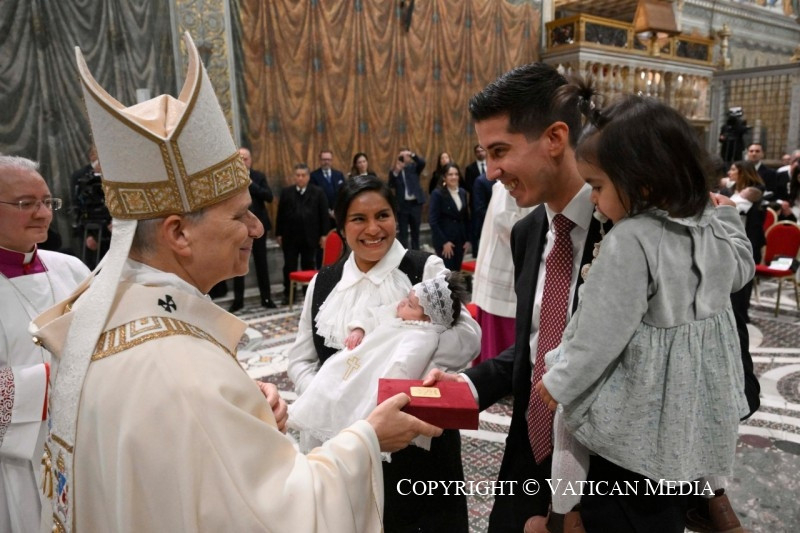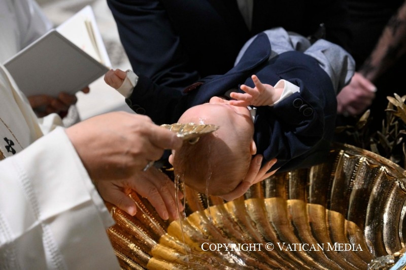 Ezt azonnal észreveszi Keresztelő János, aki így szól Jézushoz: „Neked kellene megkeresztelned engem, és te jössz hozzám?” (Mt 3,14). Íme, ez az a szentség, amelyet ma kiszolgáltatunk ezeknek a gyermekeknek: mivel Isten szereti őket, kereszténnyé válnak, testvéreinkké Krisztusban.