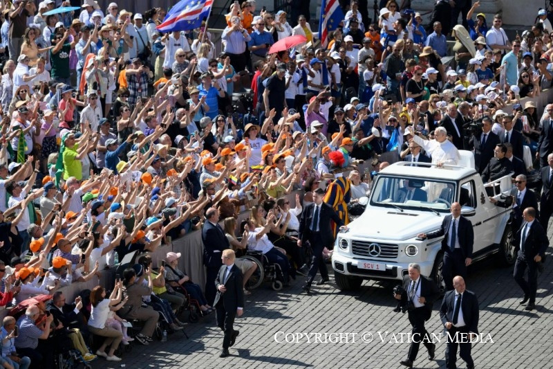 Igaz, néha ezt az emberséget elárulják. Például, amikor nem azért hivatkoznak a szabadságra, hogy életet adjanak, hanem hogy azt elvegyék, nem azért, hogy támogassák, hanem hogy ártsanak neki. Jézus azonban – a gonoszsággal szemben is, mely szembehelyezkedik és öl – továbbra is imádkozik értünk az Atyához, és imája balzsamként hat sebeinkre, a megbocsátás és a kiengesztelődés meghirdetésévé válik mindenki számára. Az Úrnak ez az imája teljes értelmet ad azoknak a ragyogó pillanatoknak, amikor – szülőként, nagyszülőként, gyermekként – szeretjük egymást. És ezt akarjuk hirdetni a világnak: azért vagyunk itt, hogy „egyek” legyünk, ahogy az Úr azt akarja, hogy „egyek” legyünk, családjainkban és bárhol élünk, dolgozunk és tanulunk: különbözőek, mégis egyek, sokan, mégis egyek, mindig, minden körülmények között, minden életszakaszban.