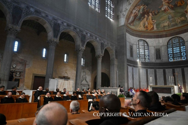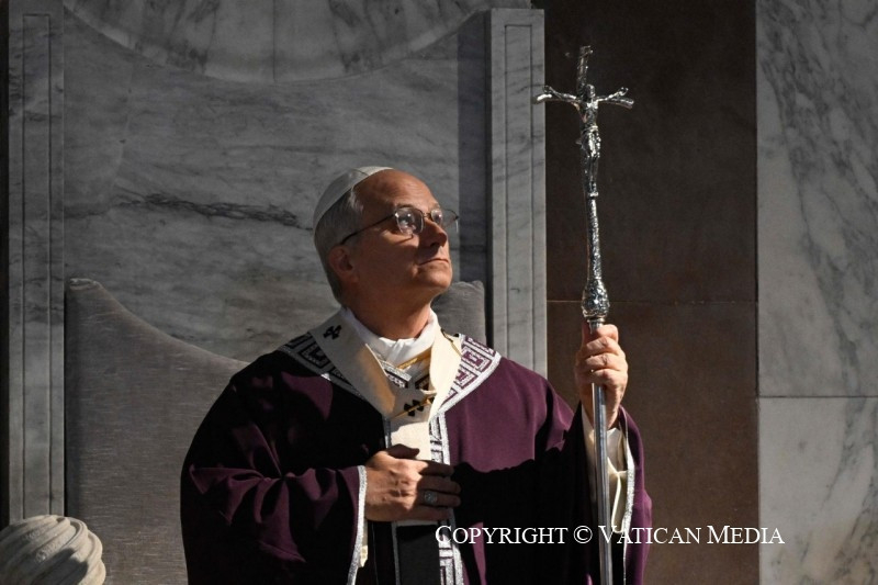 A körmeneten bíborosok, érsekek, püspökök, a Sant’Anselmo bencés szerzetesei, a Santa Sabina domonkos atyái és hívők vettek részt. A Santa Sabina-bazilikában XIV. Leó pápa vezette az eucharisztikus ünneplést a hamu megáldásának és a hamvazásnak a szertartásával.