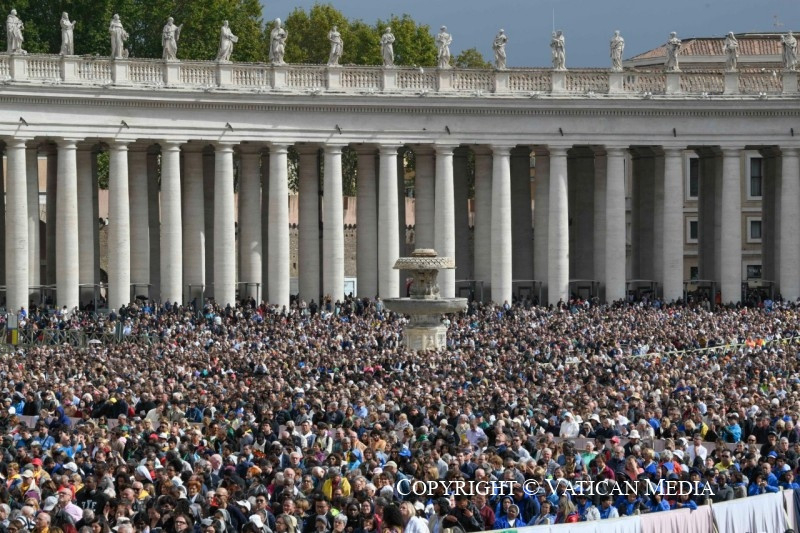 amelyek olyanokká válnak, mint az a magocska, amelyről Jézus beszél; és ez a szabadulás lassanként növekszik, amikor „haszontalan szolgák” leszünk, vagyis amikor az evangélium és testvéreink szolgálatába állunk anélkül, hogy a magunk hasznát keresnénk, hanem csupán azért, hogy elvigyük a világba az Úr szeretetét.