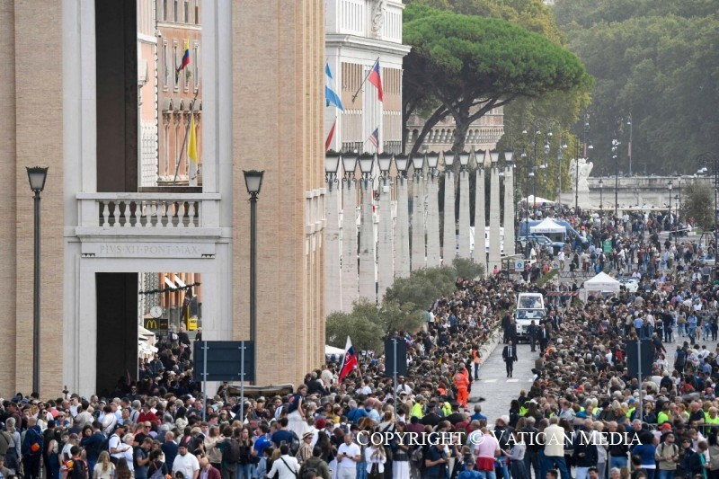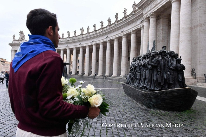 Ma a misszionáriusok és a migránsok jubileumát ünnepeljük. Ez jó alkalom arra, hogy felélesszük magunkban a misszionáriusi hivatás tudatát, amely abból a vágyból fakad, hogy mindenkinek elvigyük az evangélium örömét és vigaszát, különösen azoknak, akiknek nehéz és sebekkel teli élettörténetük van. Különösen migráns testvéreimre gondolok, akik kénytelenek voltak elhagyni hazájukat, gyakran szeretteiket hátrahagyva, a félelem és a magány éjszakáin átkelve, saját bőrükön tapasztalva meg a hátrányos megkülönböztetést és az erőszakot.