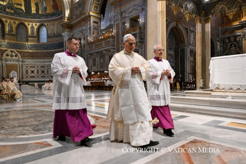 ez olyan „húsvéti lakoma, amelyen Krisztust vesszük magunkhoz, lelkünket kegyelem tölti el, s a jövendő dicsőség záloga nekünk adatik” (Sacrosanctum Concilium liturgikus konstitúció, 47). A püspökökben és a papokban, akik „az új szövetség papjaivá” lettek az Úr parancsa szerint (trentói zsinat: De Missae Sacrificio, 1), az ő Isten egész népe iránti szeretetének jele van jelen, s ezt a népet teljes önátadással kell szolgálnunk, szeretett testvéreim.
