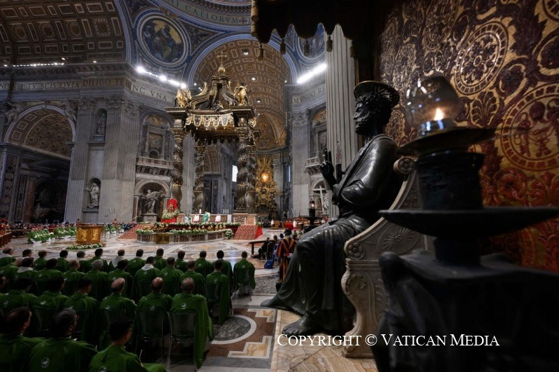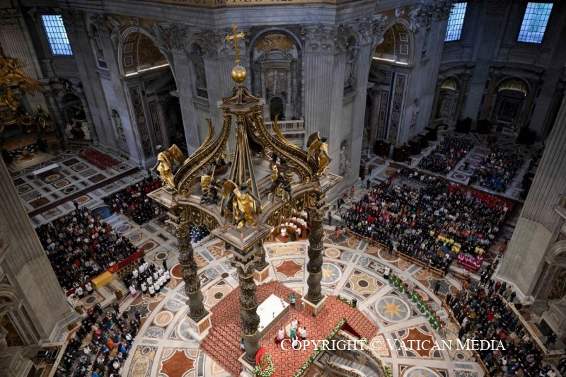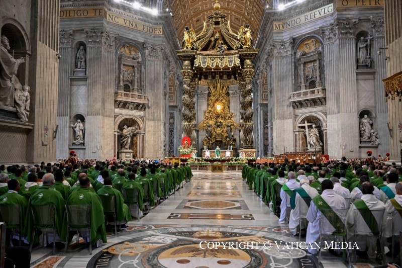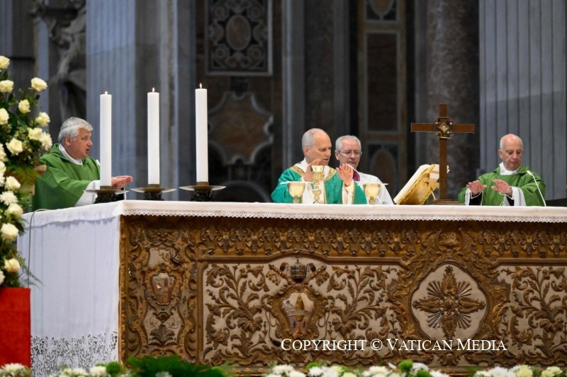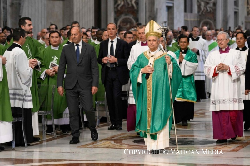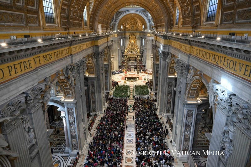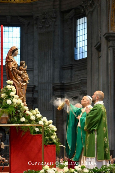 Amikor az evangéliumot olvassuk, az egyik jól ismert mondat így szól: „Boldogok a lélekben szegények, mert övék a mennyek országa” (Mt 5,3). Mi mindannyian az Úr szegényei közé szeretnénk tartozni, mert életünk Isten ajándéka, melyet nagy hálával fogadunk. Köszönöm nektek, hogy itt vagytok! A bazilika most kicsinek bizonyul… Ti az Egyházhoz tartoztok, és a kivetítőkről is követhetitek a szentmisét. Nagy szeretettel, nagy hittel vegyetek részt rajta, és tudjátok, hogy mind egyek vagyunk Krisztusban! Most tehát bemutatjuk a szentmisét, utána pedig találkozunk az Úrangyala elimádkozásakor itt, a téren. Isten áldjon meg mindnyájatokat! Szép vasárnapot!