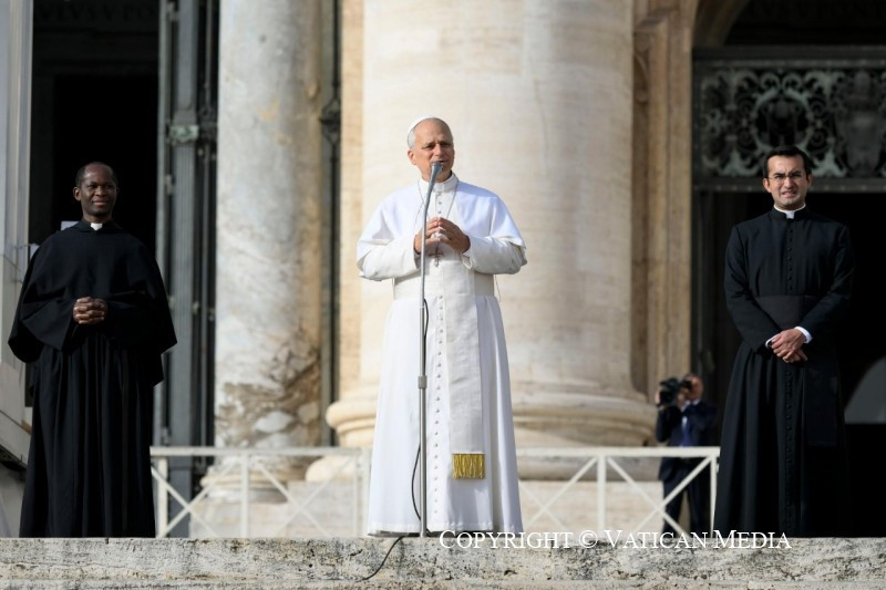 Köszöntés a Szent Péter téren összegyűlt hívekhez a mise előtt: