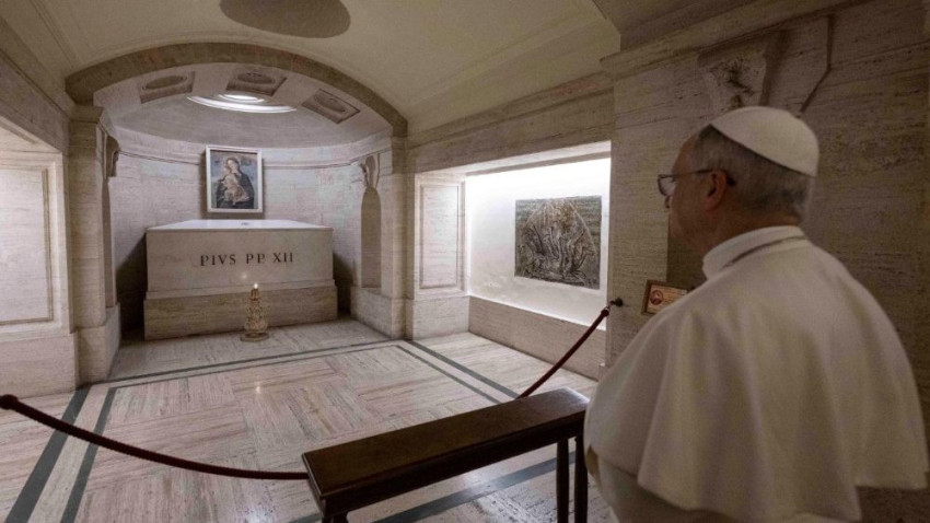 A mise után a pápa elődjeinek sírjánál és az úgynevezett Pallium fülke előtt imádkozott. Beszédében hivatások ébresztésére, párbeszédre, az Úr szavának hallgatására biztatott.
