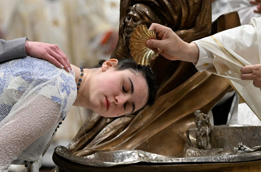 Április 4-én, nagyszombat éjjelén a Szent Péter-bazilikában a Szentatya vezette a húsvéti vigíliaszertartást, mely a bazilika előcsarnokában kezdődött a tűz megáldásával és a húsvéti gyertya előkészítésével. A meggyújtott húsvéti gyertyával körmenetben vonultak az oltárig, ahol felhangzott az Exsultet, a húsvéti örömének, melyet az igeliturgia, a keresztelés szertartása és az eucharisztia liturgiája követett.