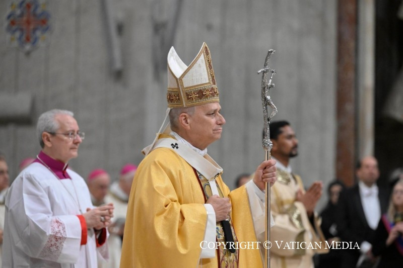Ezt követően vette kezdetét az ünnepi szentmise. Az olvasmány spanyol nyelven (Iz 9,1–6), a szentlecke francia nyelven (Tit 2,11–14), az evangélium olasz nyelven (Lk 2,1–14) hangzott el. Az evangélium felolvasása után az evangeliariumot a jászol mögött található díszes evangéliumos könyvtartón helyezték el.