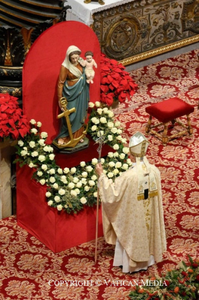 Így a karácsony új lendületet ad a misszionárius Egyháznak, és arra ösztönzi, hogy azokon az ösvényeken járjon, amelyeket Isten Igéje jelölt ki számára. Nem egy erőszakos szót szolgálunk – abból már mindenütt túl sok visszhangzik –, hanem egy olyan jelenlétet, amely előhívja a jót, ismeri annak hatékonyságát, és nem sajátítja ki azt.