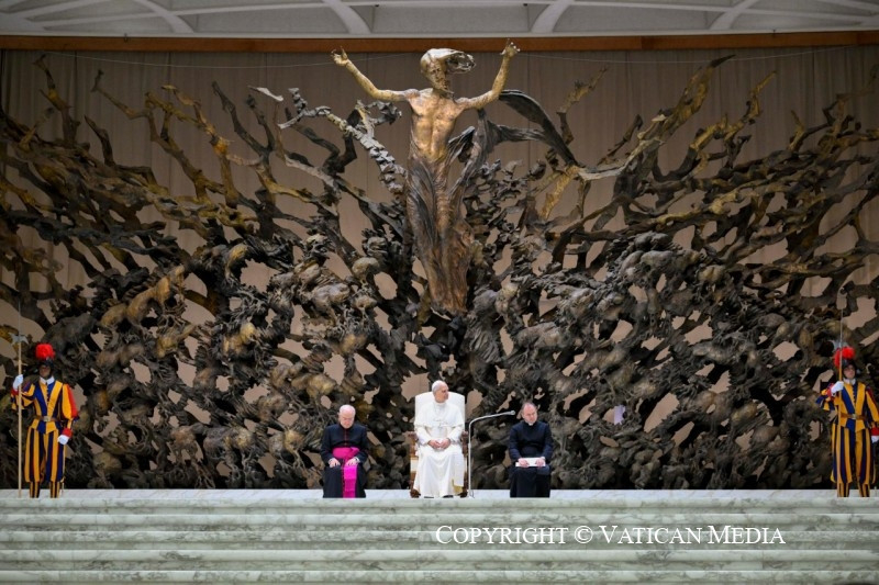 Kérjük az Úrtól az ő bocsánatát, és tanuljunk meg megbocsátani egymásnak! Tanuljunk meg mindannyian megbocsátani, mert az egymásnak való megbocsátással a béke hídját építjük. És imádkoznunk kell a békéért, melyre oly nagy szükség van a mai világban, azért a békéért, amelyet csak Jézus Krisztus adhat nekünk. Köszönöm, hogy ma délelőtt itt voltatok, és köszönöm a türelmeteket. És kérjük az Úr áldását mindannyiunkra! [Fordítás angolból]