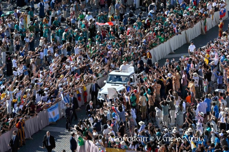 A Szentatya más nyelveken is összefoglalta katekézisét, üdvözölte a jelen lévő híveket, megemlékezett a kongói Komandában történt terrortámadás áldozatairól, valamint a helsinki záróokmány aláírásának ötvenedik évfordulójáról. Az általános kihallgatás a Miatyánk elimádkozásával és apostoli áldással zárult.