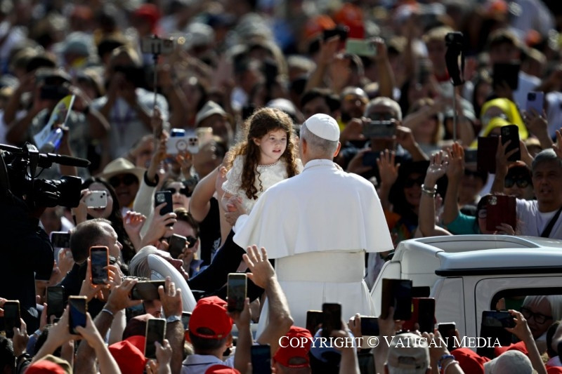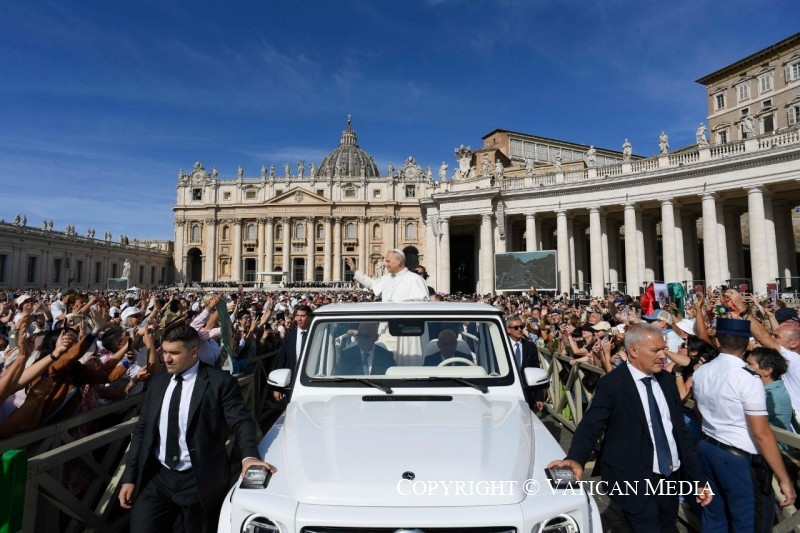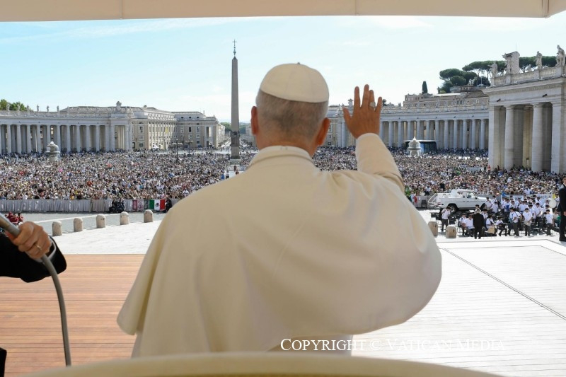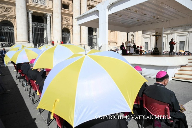 A Szentatya más nyelveken is összefoglalta katekézisét, üdvözölte a jelen lévő híveket. Az általános kihallgatás a Miatyánk elimádkozásával és apostoli áldással zárult.