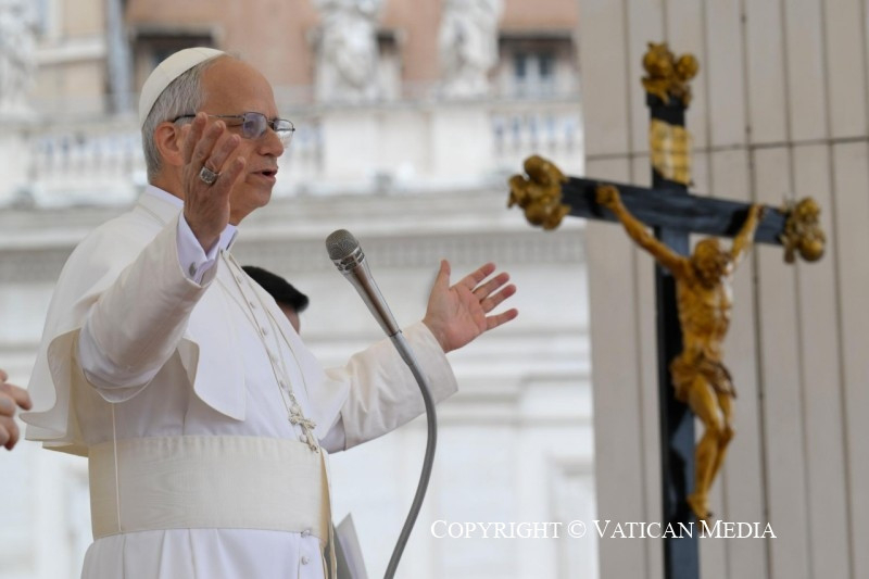 A Szentatya más nyelveken is összefoglalta katekézisét, üdvözölte a jelen lévő híveket, felhívást tett közzé a Gázai övezetben élők érdekében, és az egy hónapja elhunyt Ferenc pápáról is megemlékezett. Az általános kihallgatás a Miatyánk elimádkozásával és apostoli áldással zárult. Az alábbiakban XIV. Leó pápa teljes katekézisének fordítását közreadjuk.