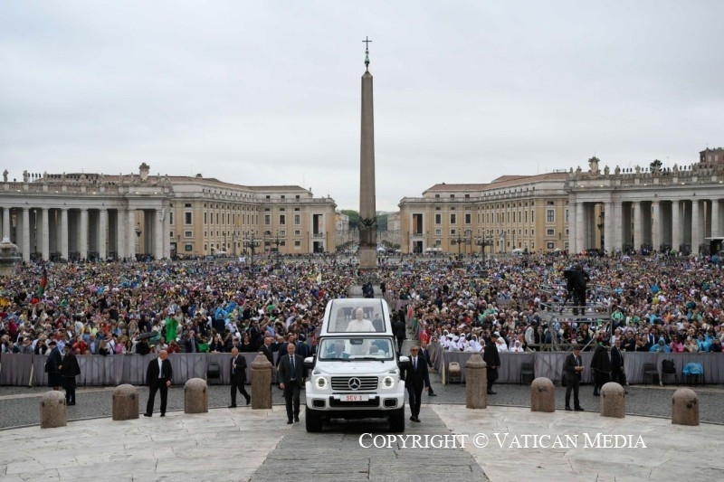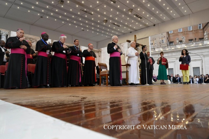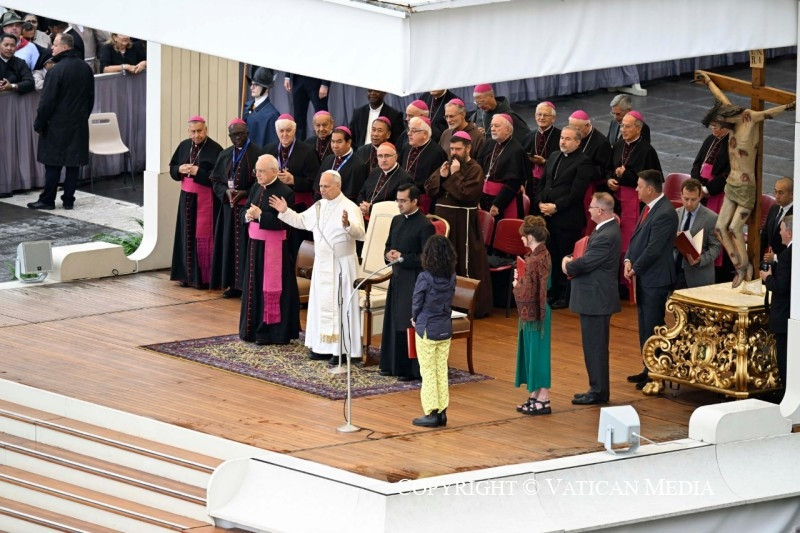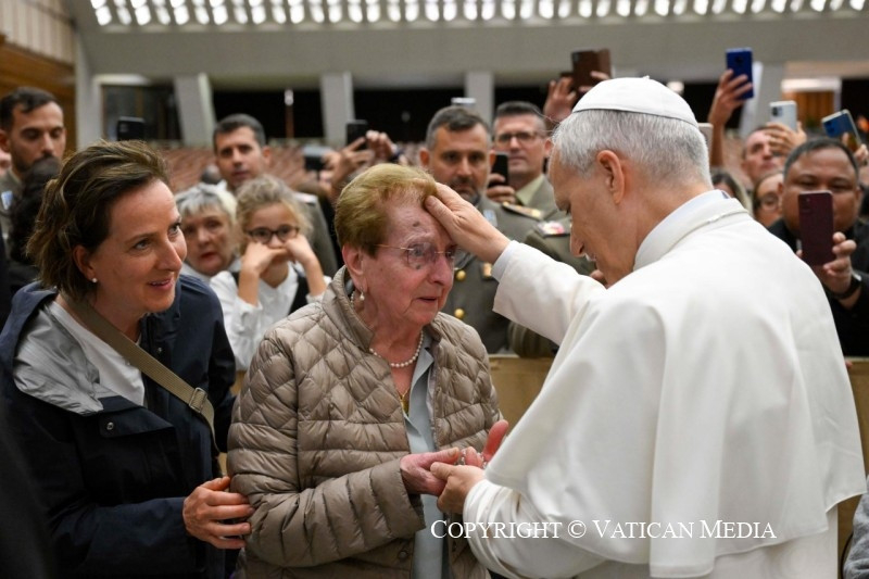 A Szentatya más nyelveken is összefoglalta katekézisét, üdvözölte a jelen lévő híveket. Az általános kihallgatás a Miatyánk elimádkozásával és apostoli áldással zárult.