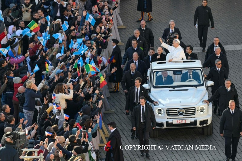 A Szentatya több nyelven is összefoglalta katekézisét, majd üdvözölte a jelen lévő híveket. Az általános kihallgatás a Miatyánk elimádkozásával és az apostoli áldással zárult.