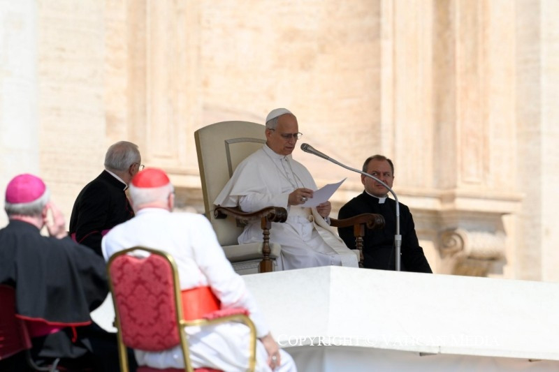 A Szentatya más nyelveken is összefoglalta katekézisét, üdvözölte a jelen lévő híveket, és megemlékezett a Hirosima és Nagaszaki ellen elkövetett atomtámadás nyolcvanadik évfordulójáról. Az általános kihallgatás a Miatyánk elimádkozásával és apostoli áldással zárult. Az alábbiakban XIV. Leó pápa teljes katekézisének fordítását közreadjuk.