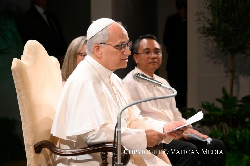 Kívánom, hogy a következő nemzetközi csúcstalálkozók – gondolok itt az ENSZ harmincadik éghajlatváltozási konferenciájára (COP30), a FAO Világélelmezés-biztonsági Bizottságának ülésére és az ENSZ 2026-ra tervezett vízügyi csúcstalálkozójára – meghallják a föld és a szegények kiáltását, a családok, az őslakos népek, az otthonukat elhagyni kényszerültek és a világ valamennyi hívőjének kiáltását. Ugyanakkor bátorítok mindenkit – különösen a fiatalokat, a szülőket, valamint a helyi és nemzeti közigazgatásban és intézményekben dolgozókat –, hogy járuljanak hozzá a „kulturális, spirituális és nevelési feladat” (Laudato si’, 202) megoldásához, mindig következetesen a közjóra törekedve.
