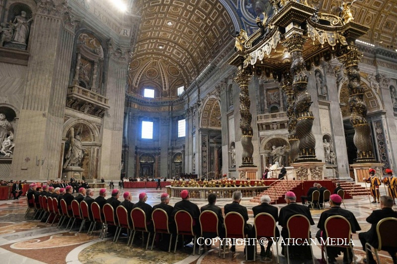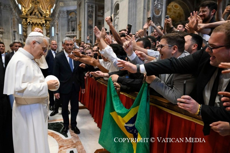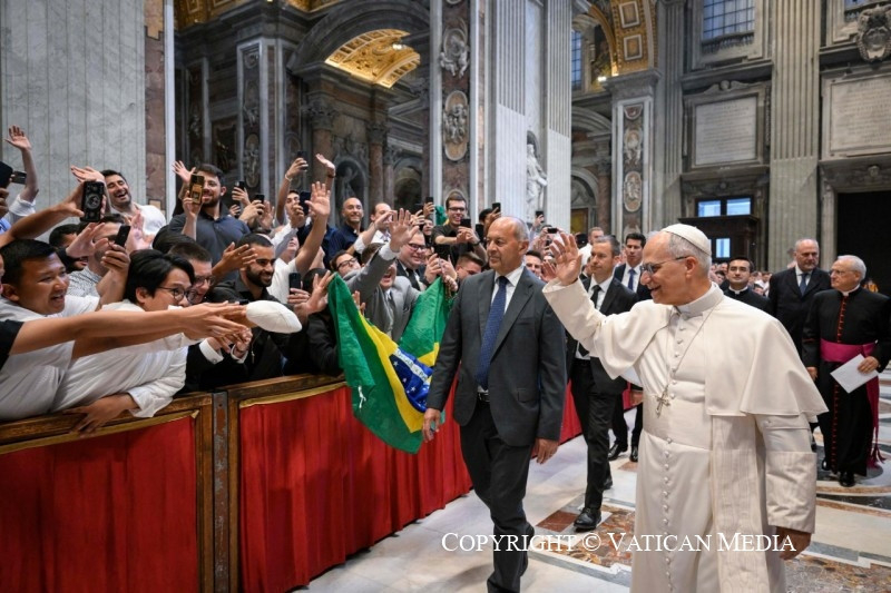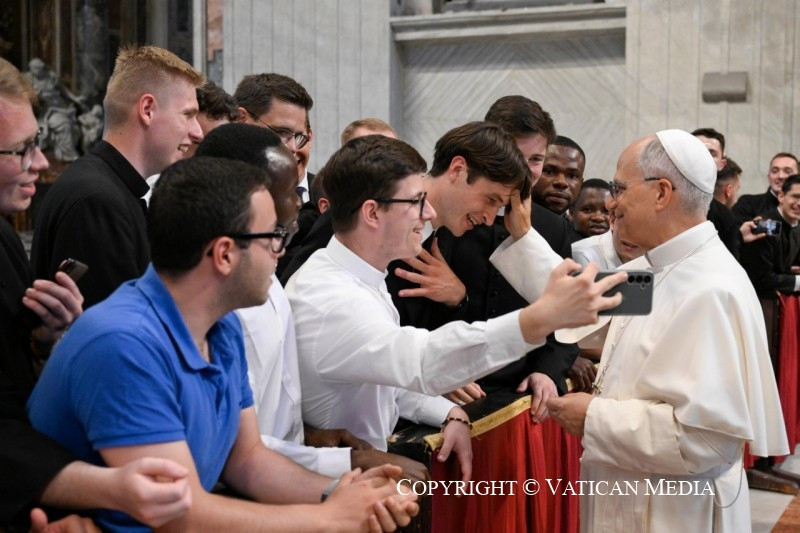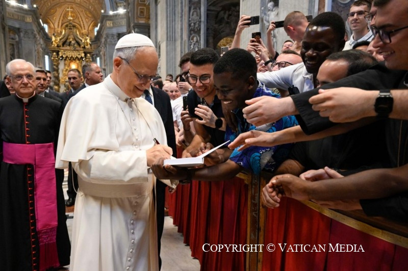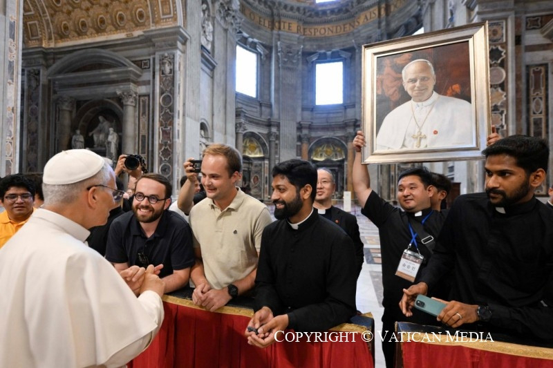 Örülök, hogy kísérhetlek benneteket ma délelőtt, jubileumotok alkalmából, együtt azokkal a papokkal, akik képzésetek során kísérnek benneteket. Különböző egyházakból jöttök a világ minden tájáról, és nagyon különböző élettapasztalatokkal rendelkeztek, de az Úrban mindannyian egy testet alkotunk. Hiszen egyetlen reményre, hivatásotok reményére vagytok elhíva (vö. Ef 4,4). Ma, Péter apostol sírjánál, velem, az ő utódával együtt, ünnepélyesen újítsátok meg a keresztségkor kapott hiteteket.