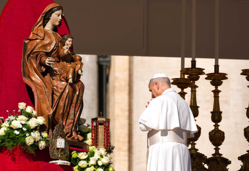 Továbbá kérem mindazokat, akik a Vatikánban teljesítenek szolgálatot, hogy ezt az imát naponta, este hét órakor a Szent Péter-bazilikában végezzék. Október 11-én, szombat este hat órakor pedig együtt fogjuk imádkozni a Szent Péter téren, a máriás-lelkiségű hívők jubileumának virrasztásán, megemlékezve a II. Vatikáni Zsinat megnyitásának évfordulójáról is.