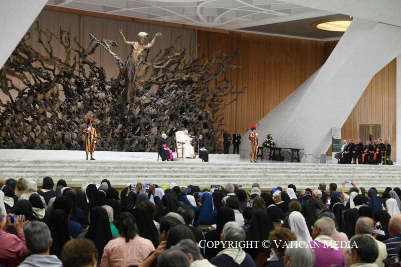 Örömmel találkozom veletek, akik a világon élő valamennyi megszentelt életű férfit és nőt képviselitek jubileumotok hetében Rómában. Szeretetteljes, szívből jövő öleléssel fogadlak benneteket, amelyet szeretnék eljuttatni a föld legtávolabbi szögleteibe is, ahol tudom, hogy megtalálhatók vagytok. Ferenc pápa szavaira utalva szeretném én is kijelenteni, hogy