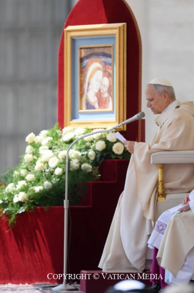 – fogalmazott. A liturgia alatt az oltár mellett állt a Jó Tanács Anyja kegykép másolata; az eredetit őrző kegyhelyre, egy Róma közeli ágostonos rendházba vezetett Leó pápa első Vatikánon kívüli útja.