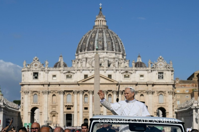 A pápamobil reggel 9 óra tájt indult el, és egy nagyobb kört megtéve érkezett meg a Szent Péter térre, ahol 10 órakor kezdődött el az ünnepélyes szentmise, mellyel XIV. Leó pápa hivatalosan megkezdte péteri szolgálatát.