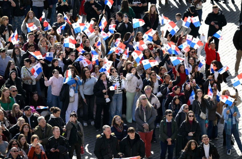 Külön is köszöntöm a bulgáriai Rakovskiból érkezett plébániai kórust, a panamavárosi Quinceañeras csoportját, a spanyolországi Badajoz „Zurbarán” Intézetének tanulóit, továbbá a firenzei San Marco Vecchio-plébánia bérmálkozó fiataljait, a Corigliano-Rossanó-i „Erodoto” általános iskola közösségét és a leccei „Cuori Aperti” önkéntes egyesületet.