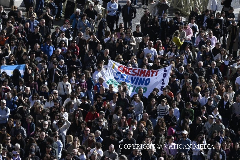 Köszöntöm a Movimento Studenti Cattolici – FIDAE országos kongresszusának résztvevőit; az Almenno San Salvatore-i bérmálkozókat, valamint a lugói, rosarói, stallavenai és alcenagói fiatalokat; a Bassano del Grappa-i „San Giuseppe” iskola és a milánói „Sant’Ambrogio” szalézi intézet gyermekeit; a petosinói, a solbiatei és cagnói fiatalokat.