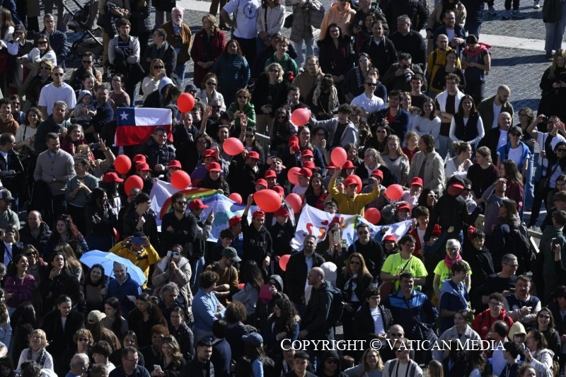 Örömmel köszöntelek mindnyájatokat, rómaiak és zarándokok. Külön is köszöntöm a spanyolországi San Lorenzo de Cadice-plébánia híveit és a Marche tartományból érkezett zarándokokat.