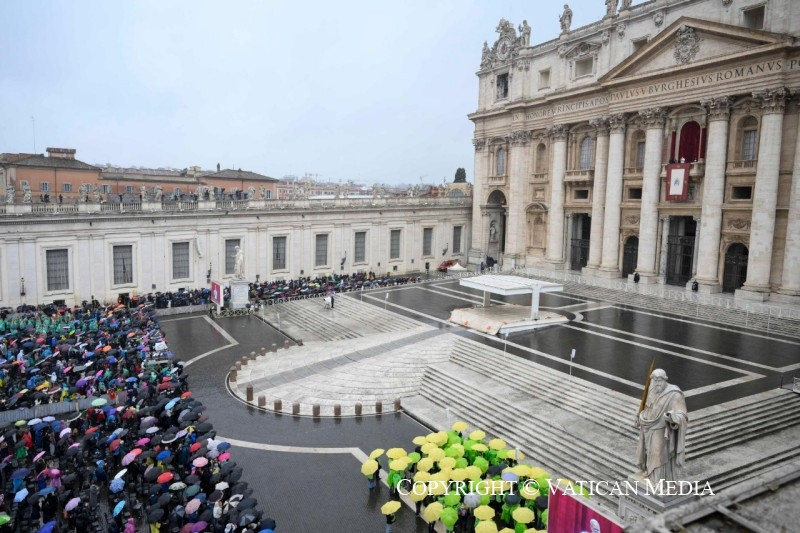 Köszöntöm a lampedusai híveket plébánosukkal együtt, a „Tra Noi” mozgalom fiataljait, valamint a vízkereszt értékeit bemutató hagyományos történelmi‑folklorisztikus felvonulás résztvevőit, melynek idei főszereplője Szicília.