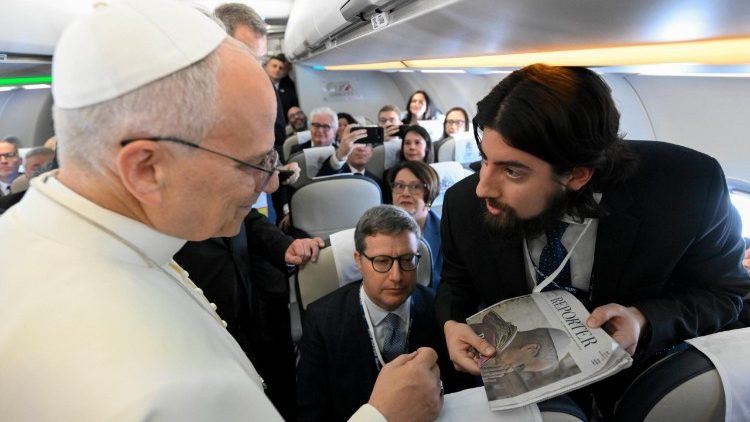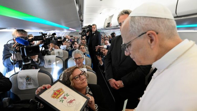„Köszönöm, hogy itt vagytok – mondja Leó pápa –, köszönöm a szolgálatotokat, amelyet ezekben a napokban fogtok végezni, és hogy részesei vagytok ennek a történelmi pillanatnak.” „Köszönöm” és „üdvözlöm” – mondta nem sokkal korábban a pápának Valentina Alazraki mexikói újságíró, a vatikáni tudósítók doyenne-je, aki 163 pápai utazást tudhat maga mögött, az elsőt 1979-ben Mexikóban II. János Pál pápával. „Elődjének, Ferenc pápának, akiről Buenos Airesben úgy tűnt, nem szereti az újságírókat, az első utazásán azt mondtam: