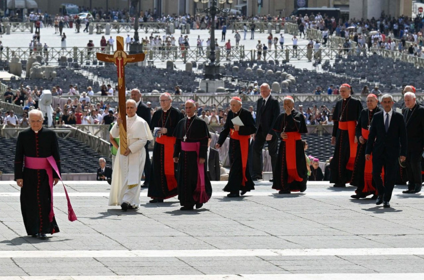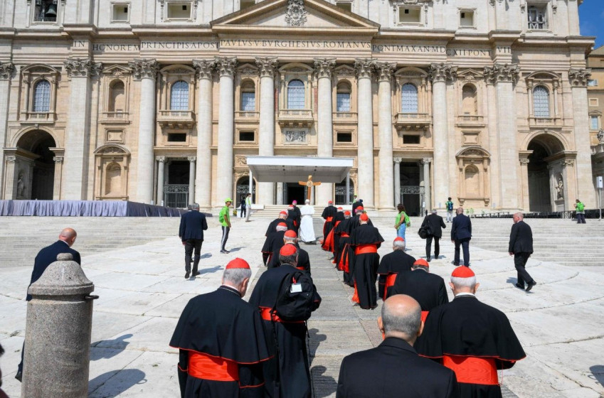 Ezt követően körmenetben vonultak a VI. Pál teremből a Szent Péter-bazilika előtti térre, hogy aztán belépjenek a szent kapun. A körmenet élén a pápa haladt, ő vitte a jubileumi keresztet, őt követték a bíborosok, a püspökök, a papok és a világi személyzet tagjai. A közös együttlét a Szentatya által vezetett koncelebrált szentmisével zárult bazilikában.