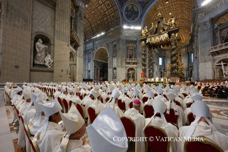 Isten igéje ezen a szentmisén megérteti velünk az Egyház misztériumát, és benne a Szentszék misztériumát annak a két bibliai ikonnak a fényében, amelyet a Lélek festett az Apostolok cselekedeteiben (1,12–14) és János evangéliumában (19,25–34).