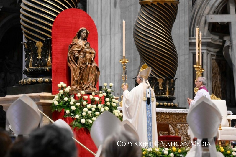 Ma abban az örömben és kegyelemben van részünk, hogy a Szentszék jubileumát Máriának, az Egyház anyjának liturgikus emléknapján ünnepelhetjük. Ez a szerencsés egybeesés világosságnak és belső inspirációnak a forrása a Szentlélekben, aki tegnap, pünkösdkor bőségesen kiáradt Isten népére. Mi pedig ebben a spirituális légkörben egy különleges napnak örülhetünk, először az elmélkedéssel, melyet meghallgattunk, most pedig itt, az ige és az eucharisztia asztalánál.