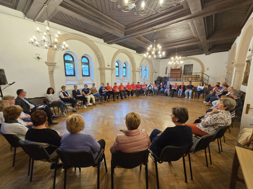 Szombaton reggel, a lelkigyakorlat folytatásában az önkéntesek Szijártó László atya segítségével azokra a kérdésekre keresték a választ személyes életükben, szolgálatukban: hol a mi helyünk a teremtésben, az egyházban? Mi a feladatunk? Ki nekünk a názáreti Jézus? Szavainkban, gondolatainkban, cselekedeteinkben neki engedünk-e teret? Amikor nehézséggel, gondokkal küzdünk, odafigyelünk-e, hogy ne az én akaratom, hanem a mennyei Atya akarata teljesüljön. Ebben példa számunkra a Boldogságos Szűz Mária, akit kereszthordozásainkban segítségül tudunk hívni. Keresztjeink nevelnek, formálnak bennünket.