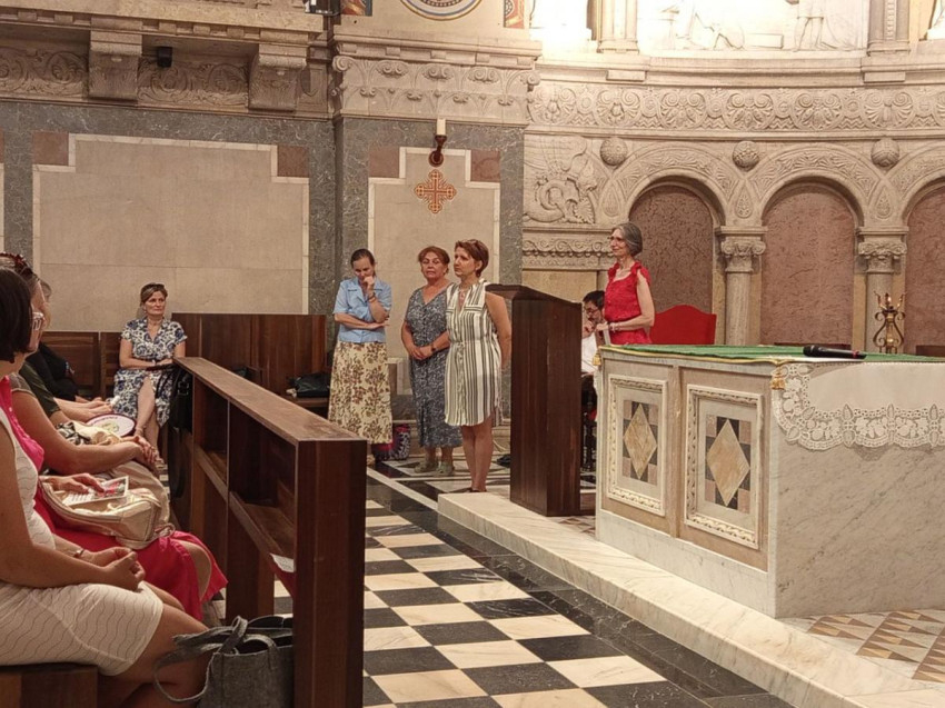 Az öröm állomásánál, a kereszthajók metszéspontjában lévő főoltár körül az Isten és az ember örömteli találkozásáról hallott bevezető után a saját hivatásuk örömeiről beszélgettek a résztvevők.