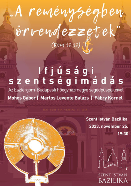 Azt hiszem, hogy amikor együtt letérdelünk az Oltáriszentség előtt, akkor mindannyiunkban növekszik a remény. Növekszik a reménye a hitünknek, az a sajátos keresztény remény, amely az Egyházban eleven, és növekszik a reménye az emberségünknek, hogy emberként ebben a mai világban is tudunk egy kicsit összetartani, tudunk együtt igyekezni, egy új országot építeni. Az Isten országát építeni, megélni háborúságok, ellentétek, feszültségek közepette is. Szívből kívánom, hogy ez a szentségimádás nemsokára, szombat este, egy ilyen imádságos, reményteli alkalom lehessen!”