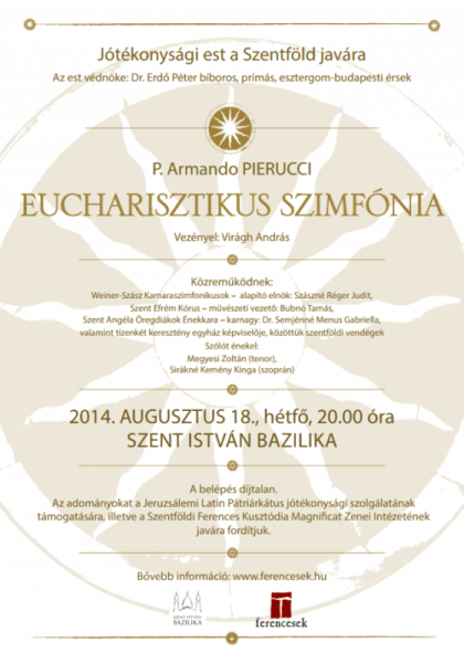 A jótékony célú rendezvényt Dobszay Benedek OFM, provinciális nyitotta meg, aki idézte VI. Pál pápa szavait, melyek szerint: „a Szentföld az ötödik evangélium”, valamint II. János Pál pápára hivatkozott, aki mindenkit felszólított, hogy segítse elő a szentföldi kereszténység fennmaradását. A Szentföldön a ferences rend legfontosabb feladata maga a jelenlét – fogalmazott Dobszay.