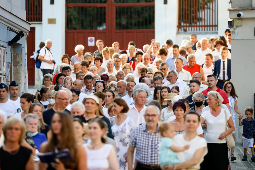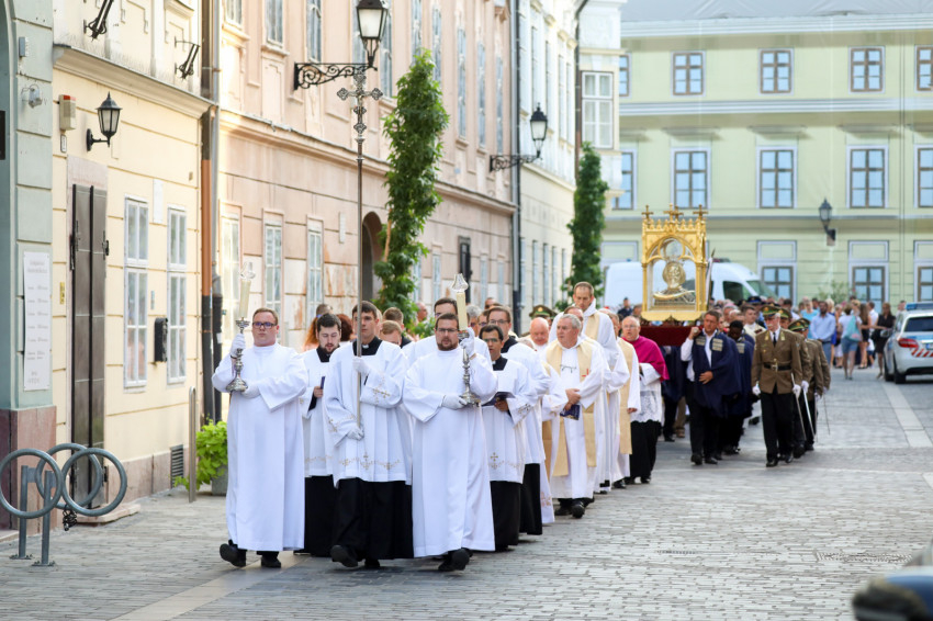 A Káptalandombról indult a körmenet a Bécsi kapu téren át. A városközpontban is mindenki tisztelettel vette körül a szent ereklyéjét és az ünneplő híveket.